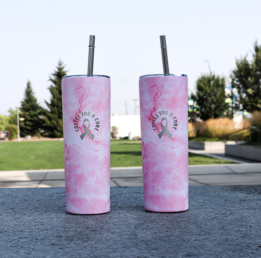 20 oz Coffee for a Cure Tumbler Pink Marble