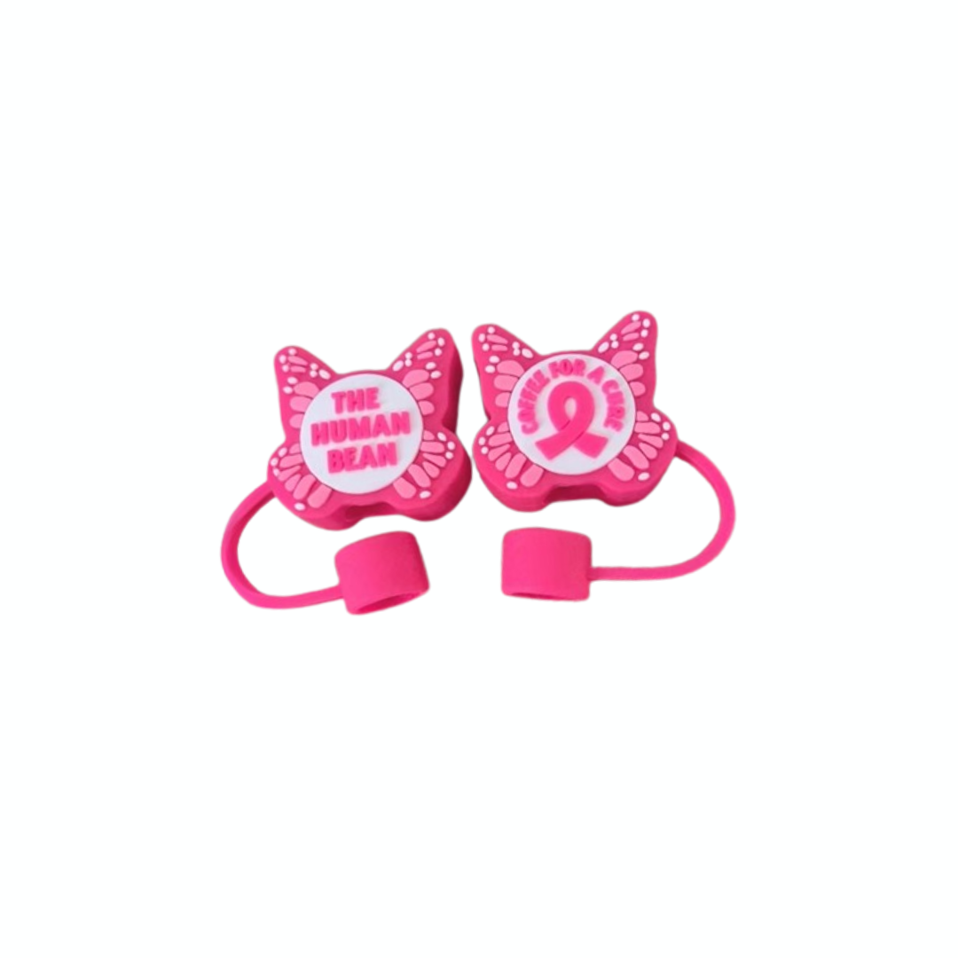 Sip with purpose using our limited-edition Pink Butterfly Straw Topper. This reusable topper is designed to fit snugly on your straw, keeping your drinks stylish and protected on the go. Featuring a butterfly design with The Human Bean logo on one side and a Coffee for a Cure ribbon on the other, it’s the perfect way to show your support for breast cancer awareness while enjoying your favorite beverages.